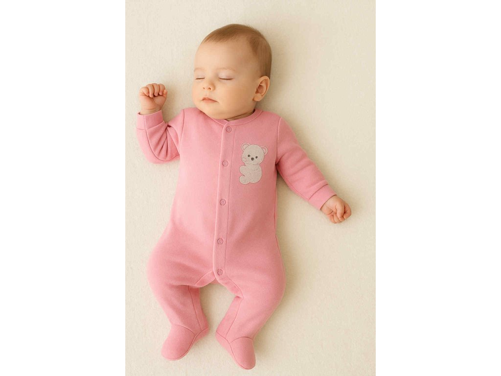 - 🐻 Dizajn: Roztomilá výšivka (medvedík, zajačik alebo kačička) dodáva overalom hravý a nežný vzhľad
